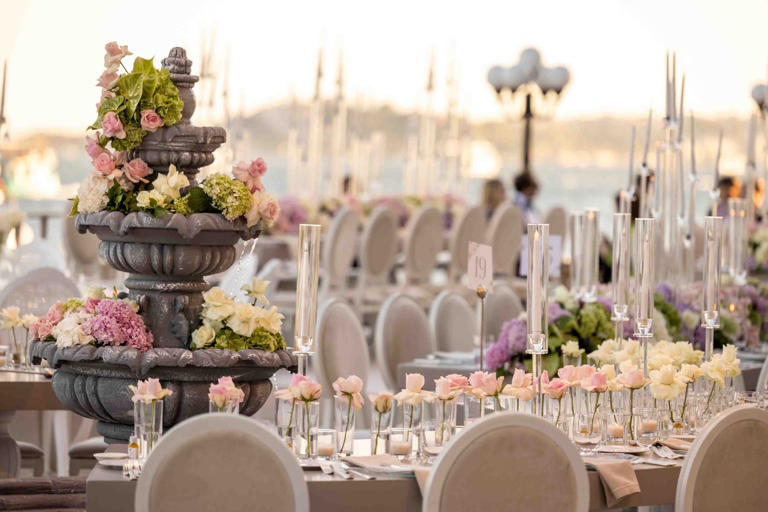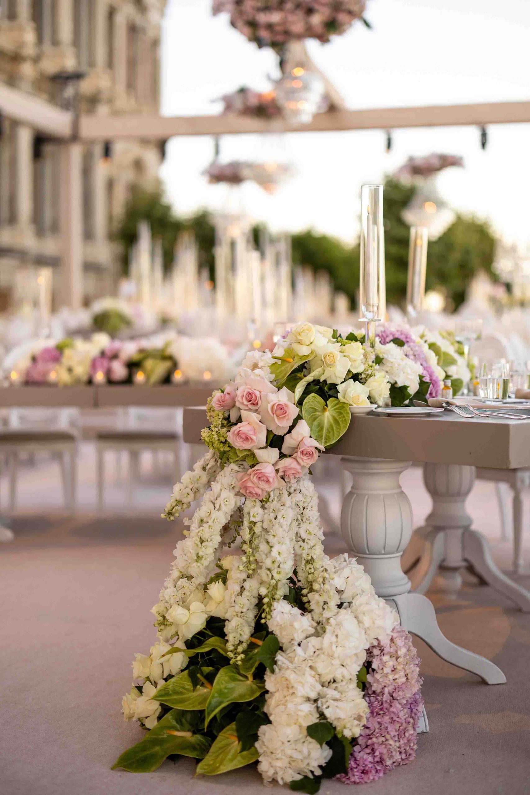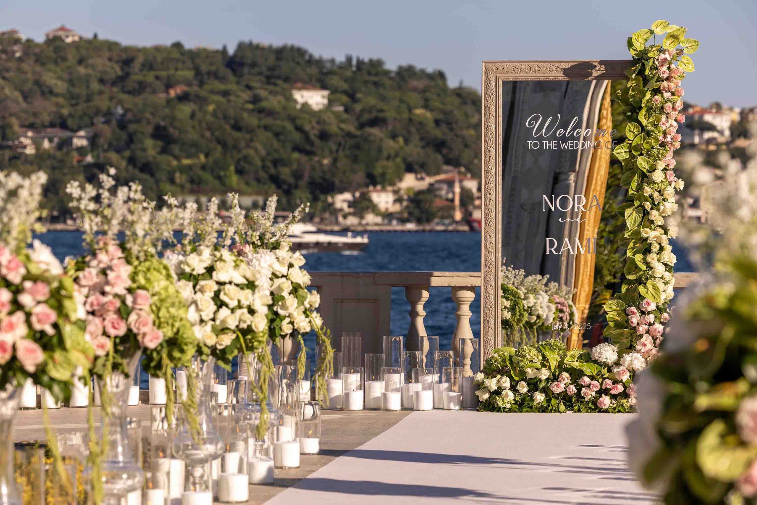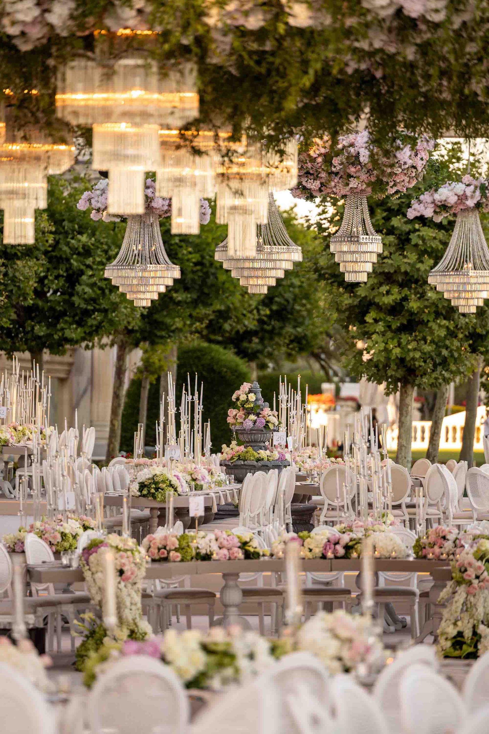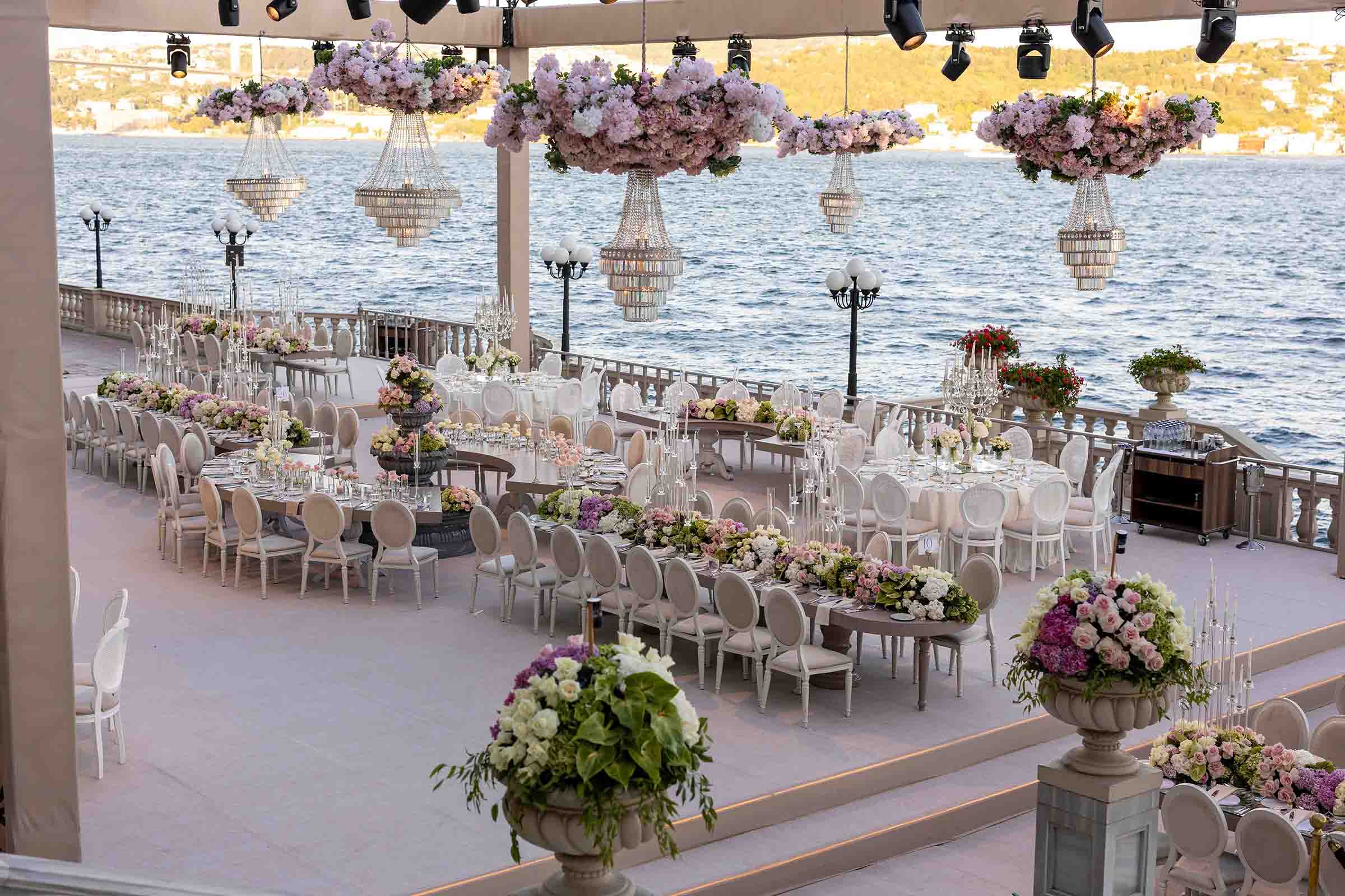 Amerika’dan gelen özel çiftimiz için Çırağan’da bir çiçek bahçesi yarattık. Açık tonların ve yeşilliklerin ön planda olduğu bu büyüleyici düğünde saray, sanki bu renklerle yeniden hayat buldu. Çırağan’ın ihtişamının bir parçası olan kristal detaylar ve göz alıcı avizeler de dekorun içine dahil edildi.